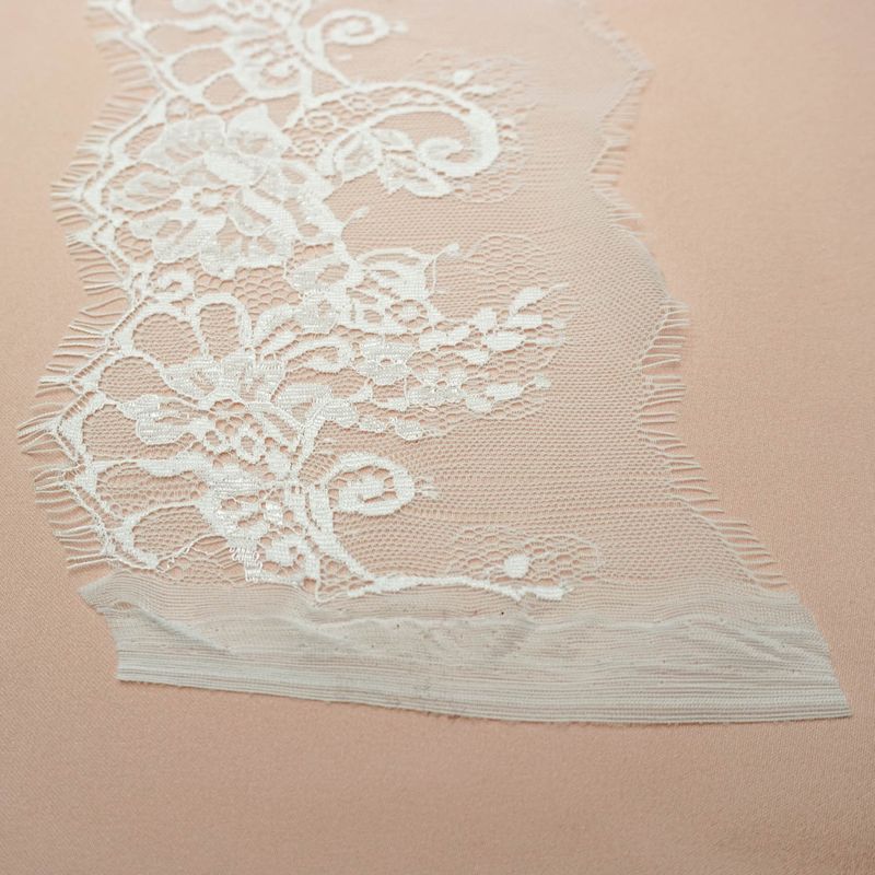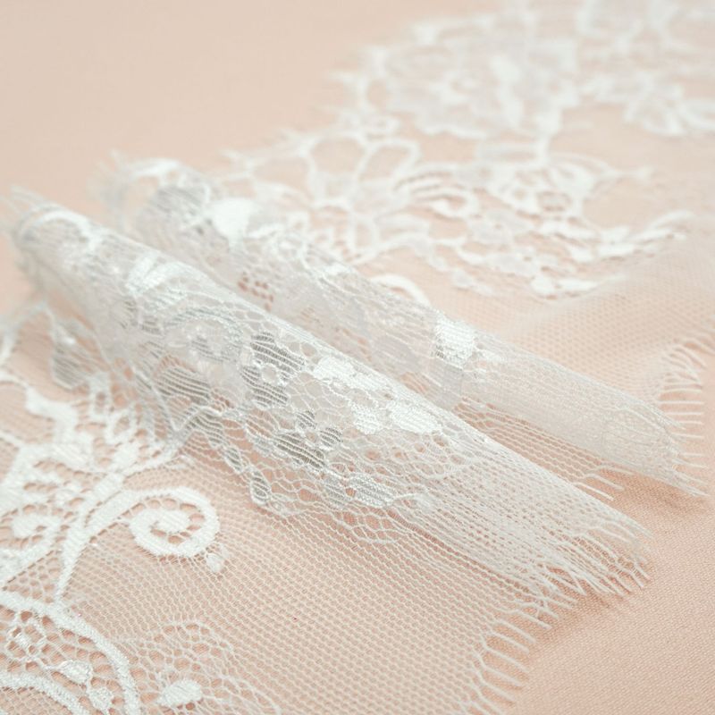 O tecido bico de renda é muito usado nos vestidos de noiva para ser aplicado em partes do vestido ou no véu para dar um acabamento e trazer um toque a mais de sofisticação.