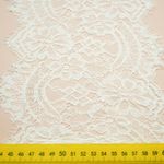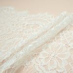 O tecido bico de renda chantilly floral off white é uma escolha clássica entre as noivas mais românticas que sonham com um vestido sofisticado que revele um toque de delicadeza e feminilidade. O bico de renda pode ser aplicado em partes do vestido ou no véu para dar um acabamento. Possui um caimento leve e delicado, além de um toque muito macio.