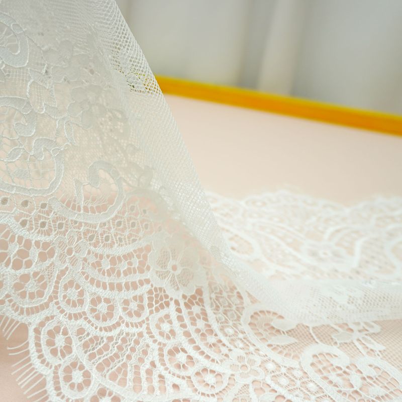 O tecido bico de renda é muito usado nos vestidos de noiva para ser aplicado em partes do vestido ou no véu para dar um acabamento e trazer um toque a mais de sofisticação.