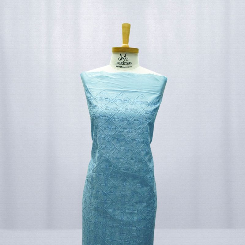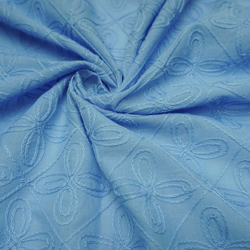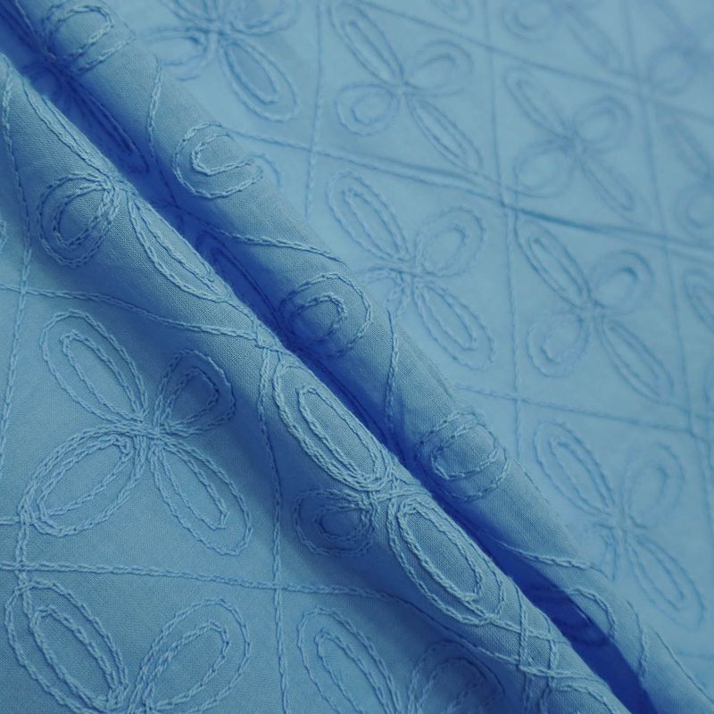 O tecido Cambraia de Algodão Bordada cordone azul serenity é leve, fresco e confortável, ideal para confecção de peças de verão, como vestidos, saias, camisas, blusas e saídas de praia. Produzido em 100% algodão, trata-se de um tecido natural, respirável e agradável ao toque, podendo também ser utilizado na confecção de roupas infantis e de bebê, devido à sua suavidade e segurança para peles sensíveis. Esta versão bordada apresenta tramas delicadas, que conferem um charme artesanal e um visual sofisticado às peças. O caimento é leve e fluido, com toque macio e leve transparência, características típicas da cambraia.