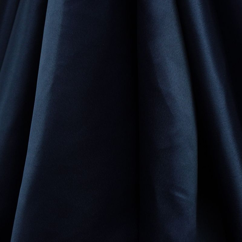 O cetim bucol azul noite é um tecido ideal para confecção de vestidos de festa e de noiva no corte evasê e godê com volume e um pouco de movimento. Confere um efeito rodado para as saias que é muito elegante. Possui um caimento estruturado. Sua textura é lisa e possui um brilho acetinado.