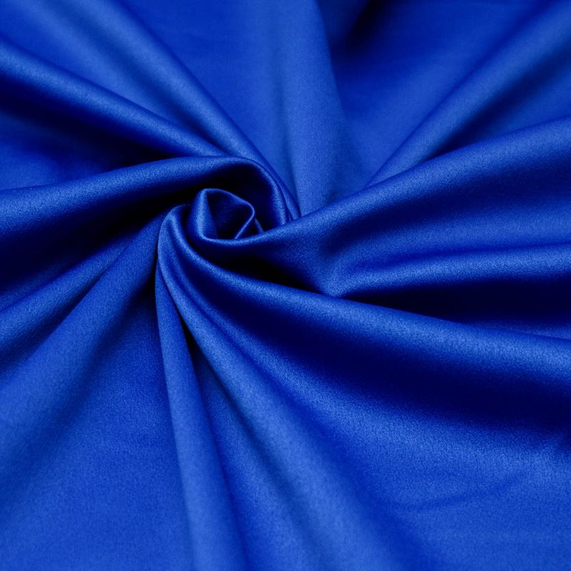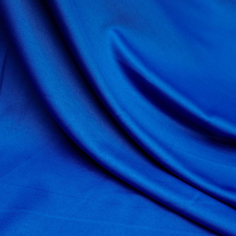 O crepe valentino leve azul royal é um tecido de caimento mais pesado, ideal para fazer vestidos no corte godê, evasê e sereia com movimento, mas sem volume. Devido a trama do fio, ele cede um pouco na largura e no viés, por isso pode ser usado para roupas mais justas, como saia sereia, vestido tubinho e blusas.