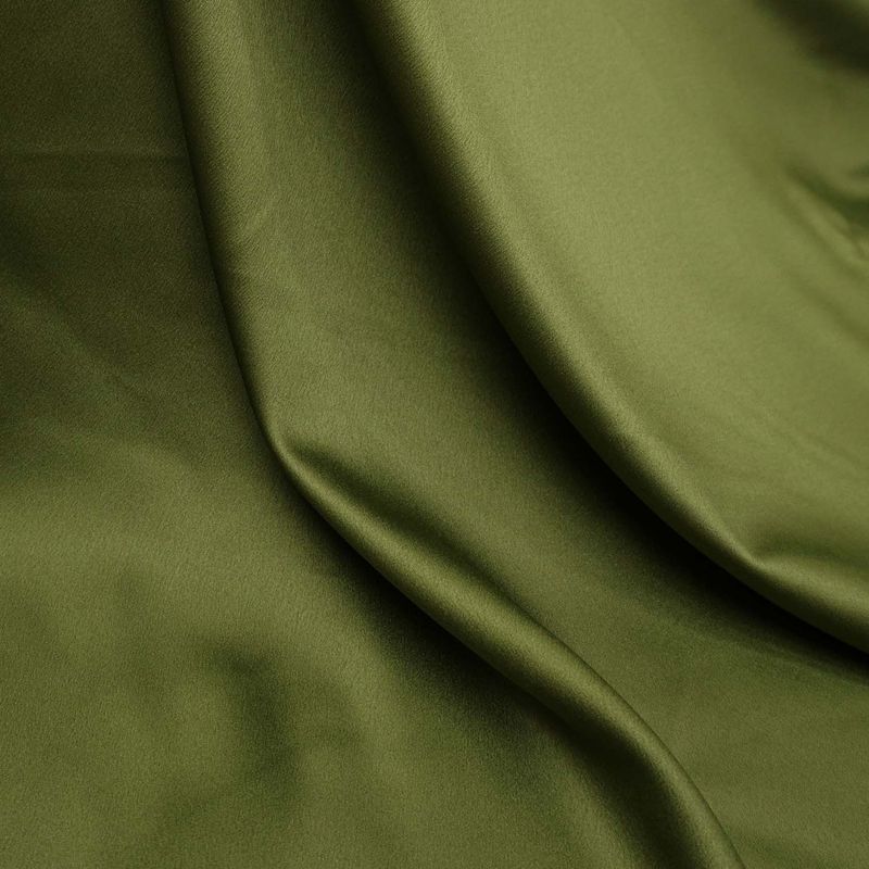 O crepe valentino verde oliva é um tecido de caimento mais pesado, ideal para fazer vestidos no corte godê, evasê e sereia com movimento, mas sem volume. Devido a trama do fio, ele cede um pouco na largura e no viés, por isso pode ser usado para roupas mais justas, como saia sereia, vestido tubinho e blusas.