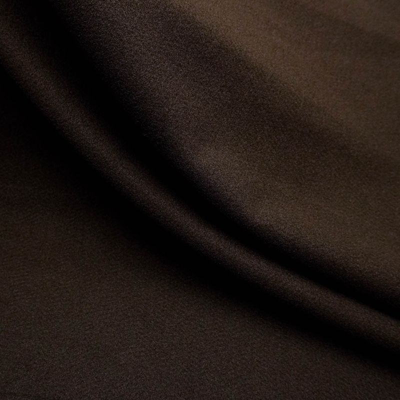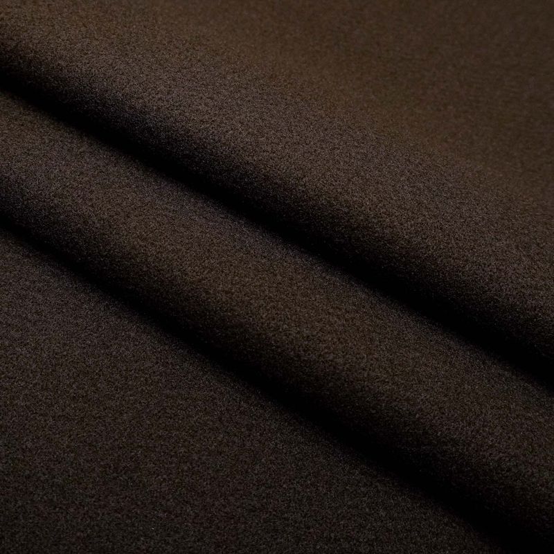 A lã batida marrom escuro (outono/inverno) é um tecido clássico do inverno, muito usada para confecção de casacos e sobretudos quentinhos. É um tecido de caimento mais pesado, textura macia, ótimo conforto térmico e uma aparência muito elegante. Pode ser usada tanto na moda casual quanto na moda social. É um tecido prático que não amassa e tem ótima resistência.