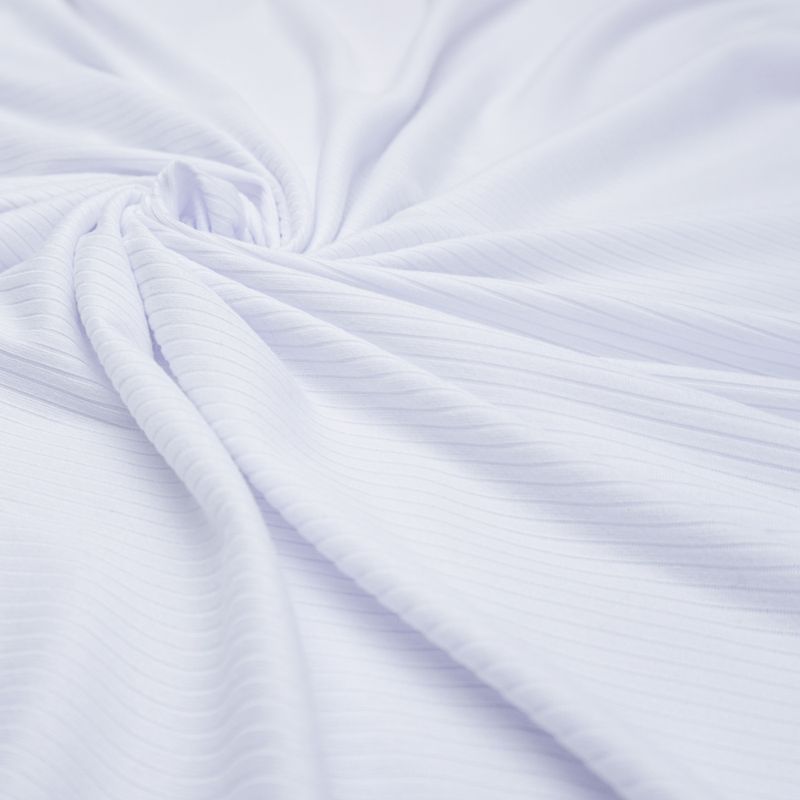 O tecido malha canelada é ideal para confecção de roupas casuais como blusas, saias e vestidos de caimento mais justo.