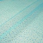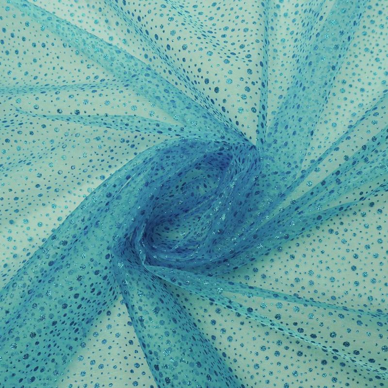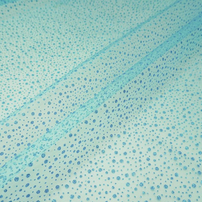 O tecido organza com glitter azul é muito utilizado em vestidos de festa com efeito volumoso. É um tecido fino, de trama simples, mas firme e com um caimento estruturado. Ideal para dar volume em saias de vestidos para noivas, debutantes e daminhas. Também pode ser usado para detalhes em roupas casuais e até para decoração. Possui transparência e um brilho muito sofisticado e marcante.