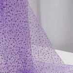 O tecido organza com glitter lilás é muito utilizado em vestidos de festa com efeito volumoso. É um tecido fino, de trama simples, mas firme e com um caimento estruturado. Ideal para dar volume em saias de vestidos para noivas, debutantes e daminhas. Também pode ser usado para detalhes em roupas casuais e até para decoração. Possui transparência e um brilho muito sofisticado e marcante.