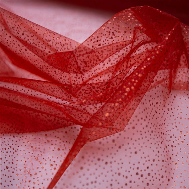 TECIDOSOrganzaOrganza com GlitterTecido organza glitter vermelho