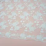 OFERTASTecidos fim de peçaTecido renda tule bordada floral branca - und 35x132 cm