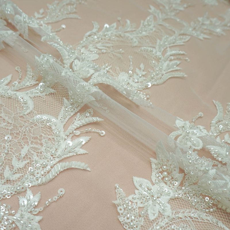 As rendas bordadas aplicadas sobre tules estão sempre presente nos vestidos mais luxuosos. Podem aparecer em apenas algumas partes do vestido ou por todo ele. Os desenhos arabescos e florais nunca saem de moda e são os preferidos das noivas, madrinhas e formandas. *(Vendido por unidade para preservar o desenho do bordado no corte). As rendas bordadas aplicadas sobre tules estão sempre presente nos vestidos mais luxuosos. Podem aparecer em apenas algumas partes do vestido ou por todo ele. Ideal para vestidos de festa e misses, além de noivas, madrinhas, formandas e debutantes.