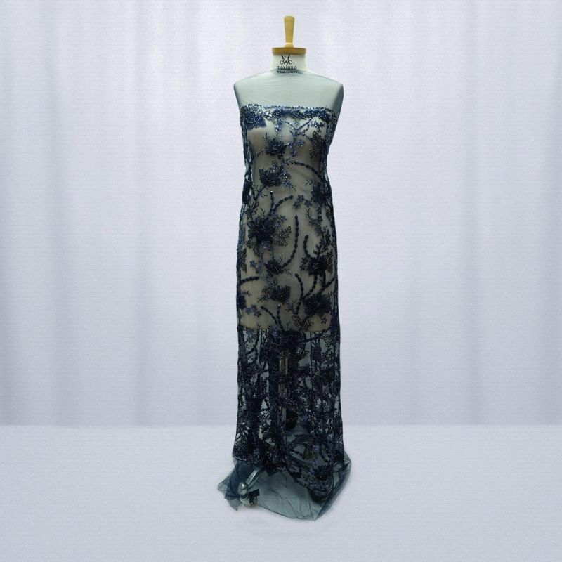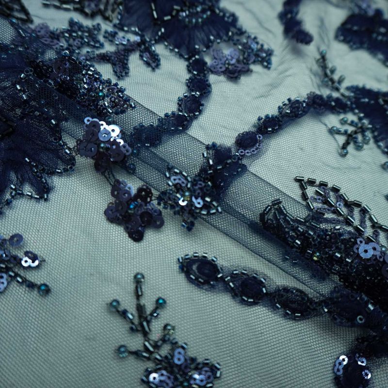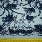Tecido renda tule bordado azul marinho
