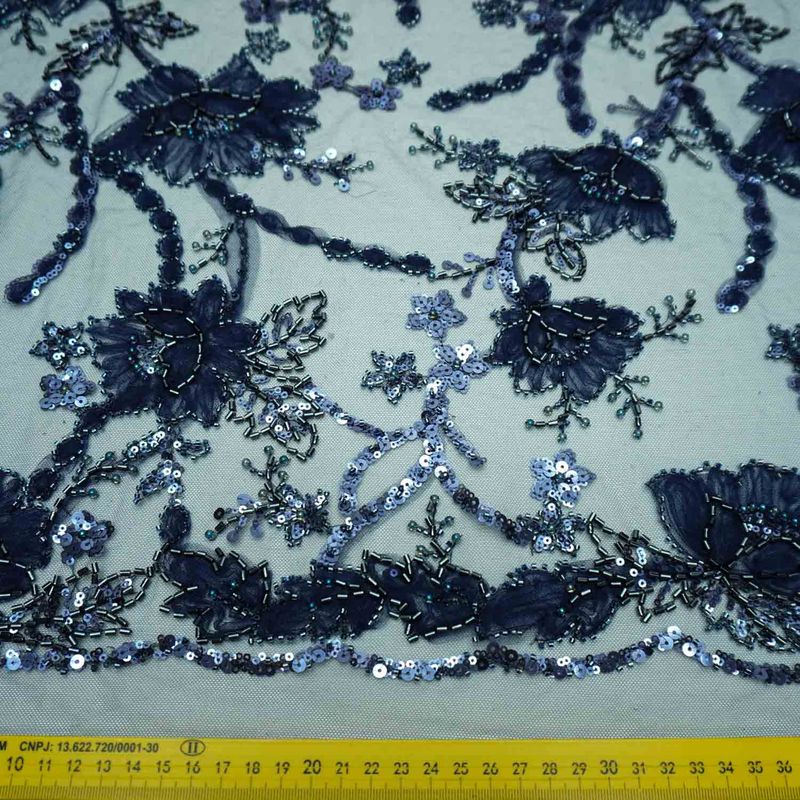 TECIDOSRendas e TulesRendas e Tules PedrariasTecido renda tule bordado azul marinho