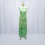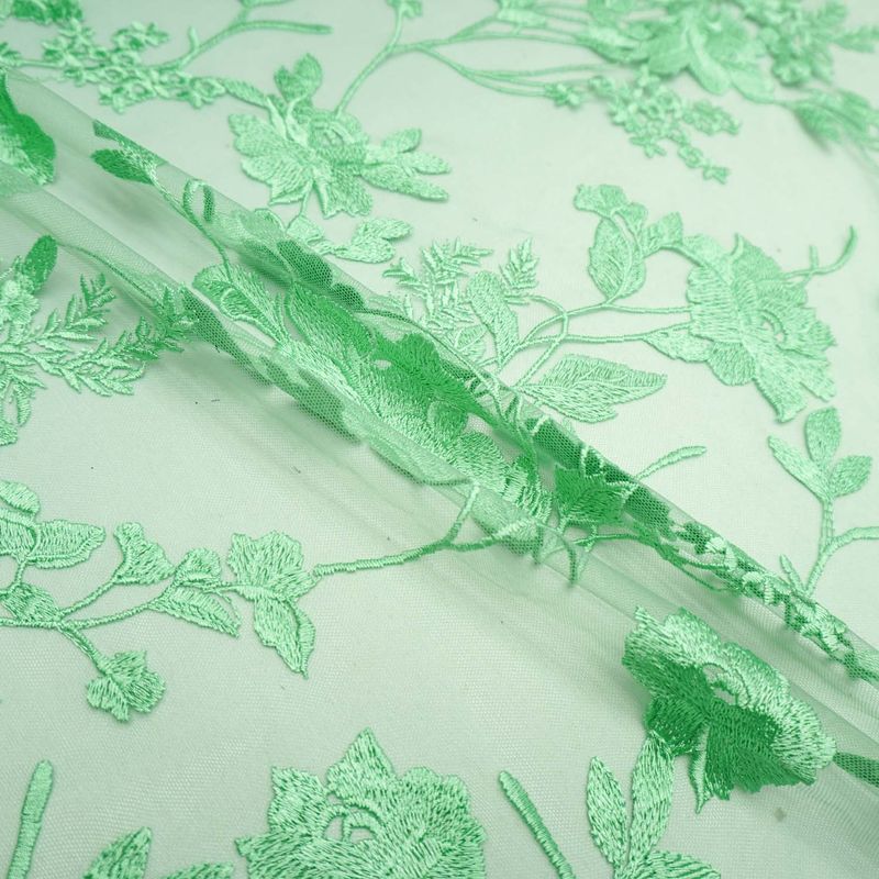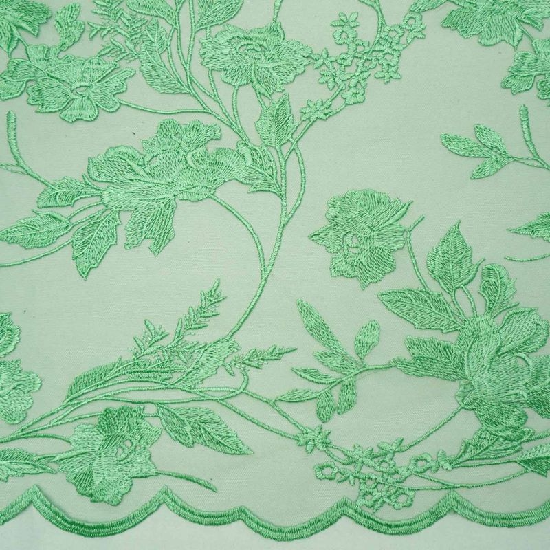 Tecido renda tule bordado floral verde menta