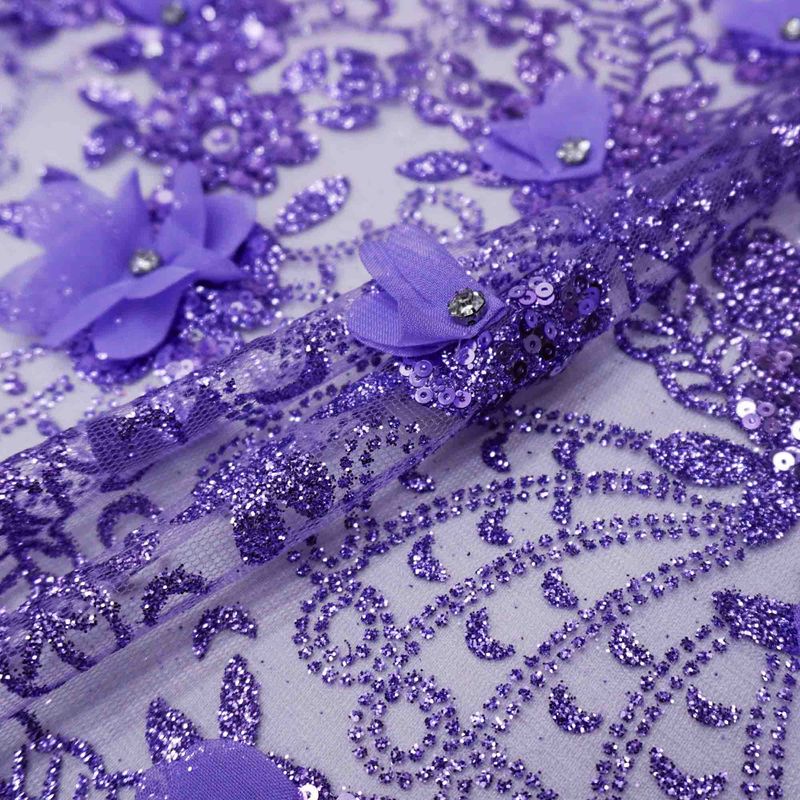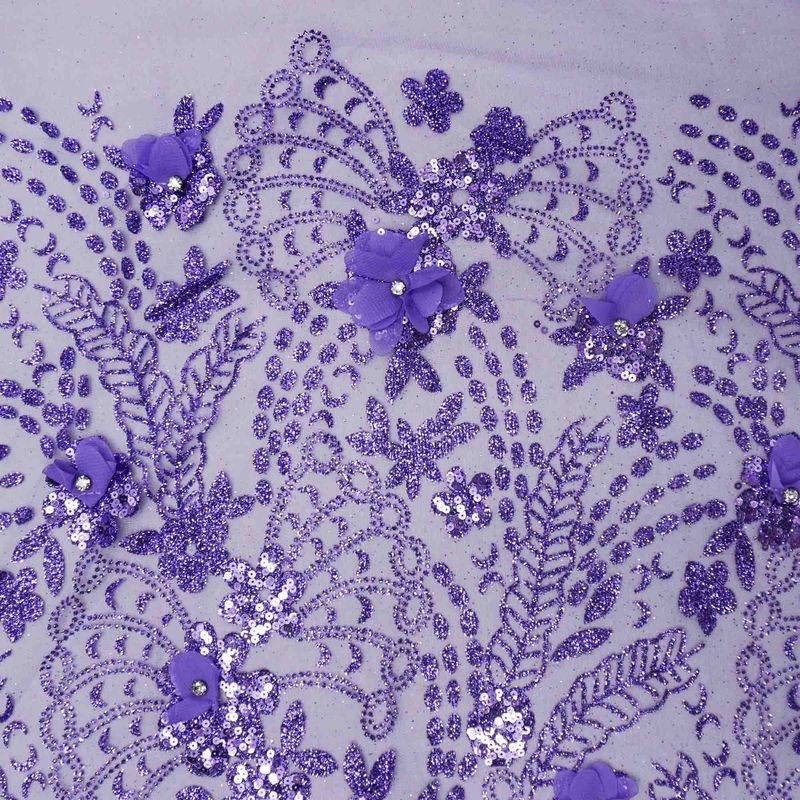TECIDOSTules LisosTule com GlitterTecido renda tule com gliter 3d bordado floral lilás