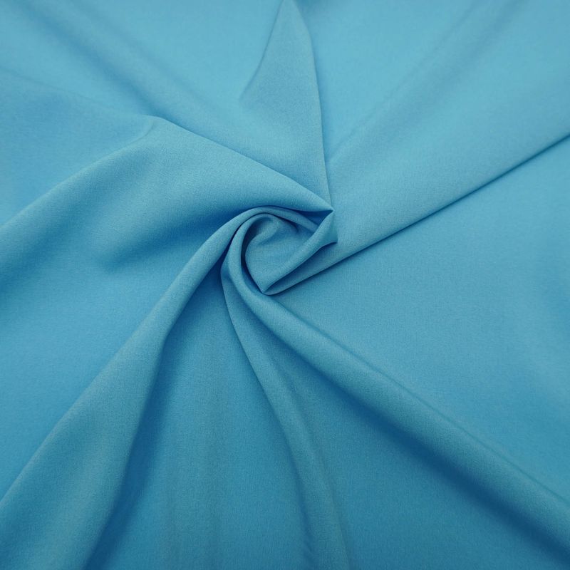 O tecido seda pluma azul claro é delicado e muito elegante. Seu caimento é leve, ideal para peças de roupa que pedem um efeito mais solto e com movimento. Com ele você pode fazer vestidos de festa, vestidos casuais, saias, blusas e camisas fluidas. Seu toque é macio. Possui elasticidade e uma leve transparência.