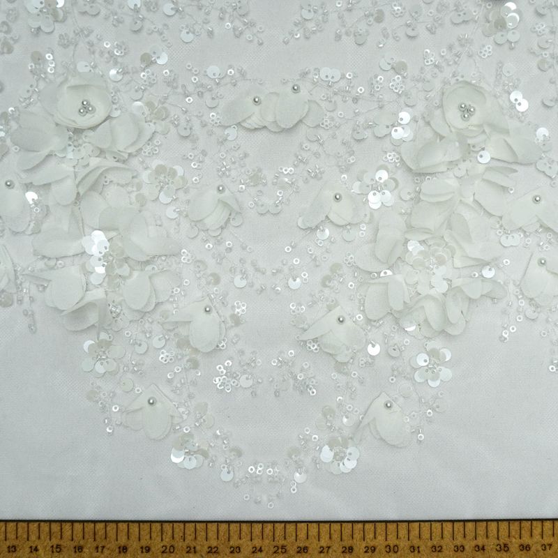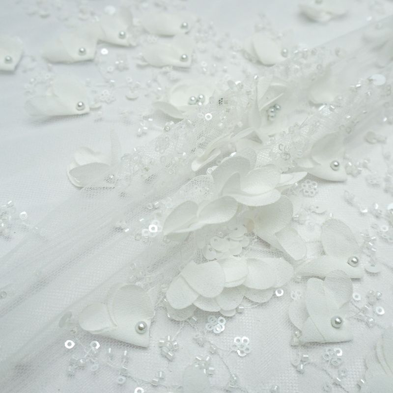 TECIDOSRendas e TulesTecido tule bordado mini paete floral 3D off white