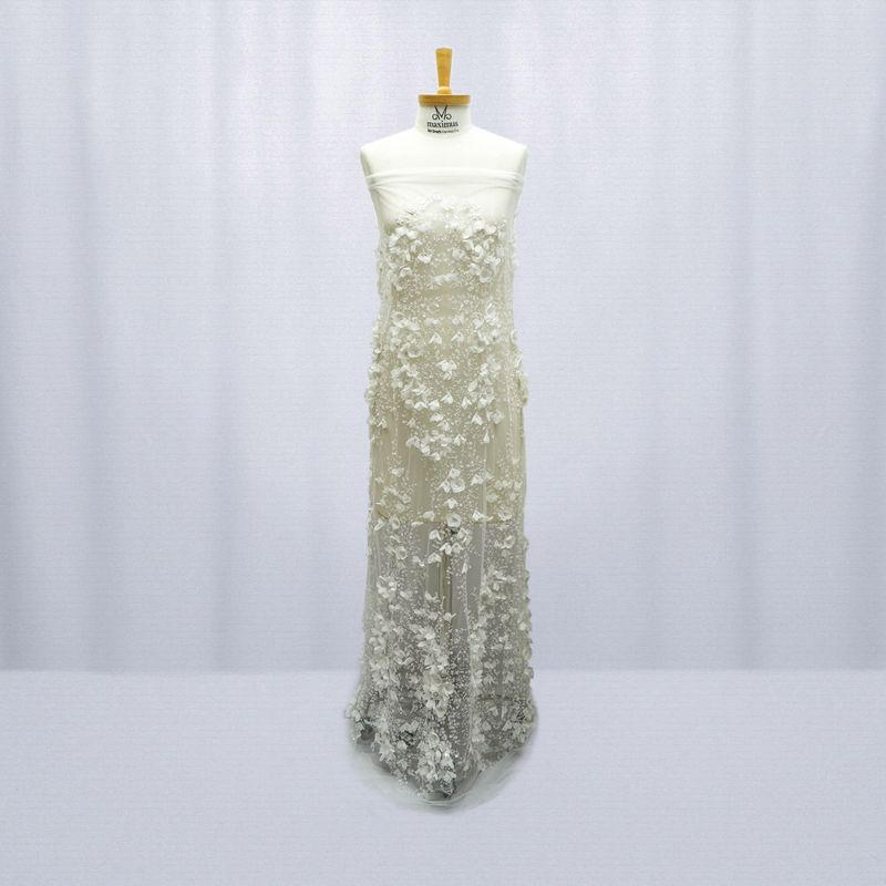 As rendas bordadas aplicadas sobre tules estão sempre presente nos vestidos mais luxuosos da moda noiva e moda festa.