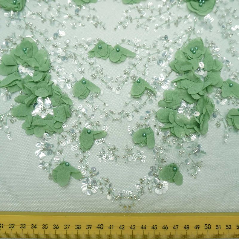 TECIDOSRendas e TulesTule Bordado PaetêTecido tule bordado mini paete floral 3d verde claro