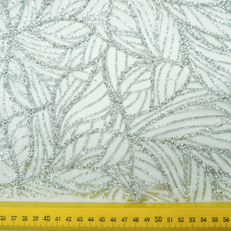 TECIDOSRendas e TulesRenda BordadaTecido tule com glitter diamante quebrado prata
