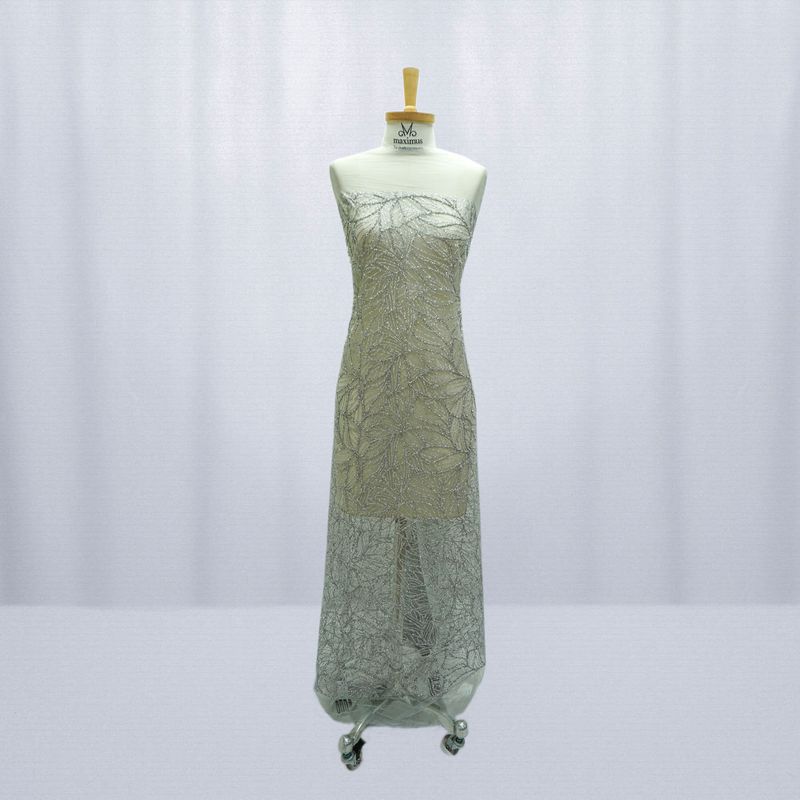 O tule com glitter diamante quebrado prata é um tecido muito usado para fazer sobreposição em vestidos de festa para madrinhas, formandas, debutantes e vestidos de noiva. Sua superfície cheia de brilho confere um efeito luxuoso. Também proporciona um volume muito bonito para as saias. É um tecido construído com fios entrelaçados que criam uma rede transparente, mas bastante firme e estável.