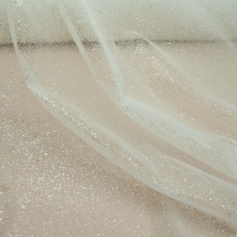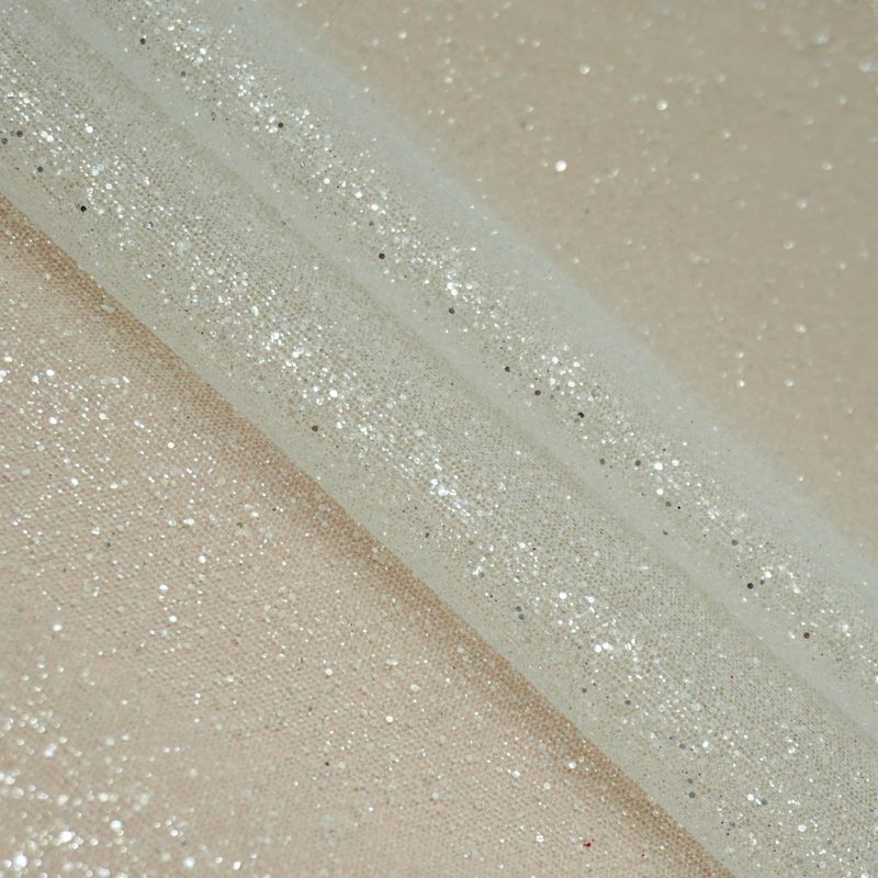 O tule com glitter é muito utilizado para fazer sobreposição em saias de vestidos de festa para madrinhas, formandas, debutantes, além de vestidos de noiva e para daminhas.